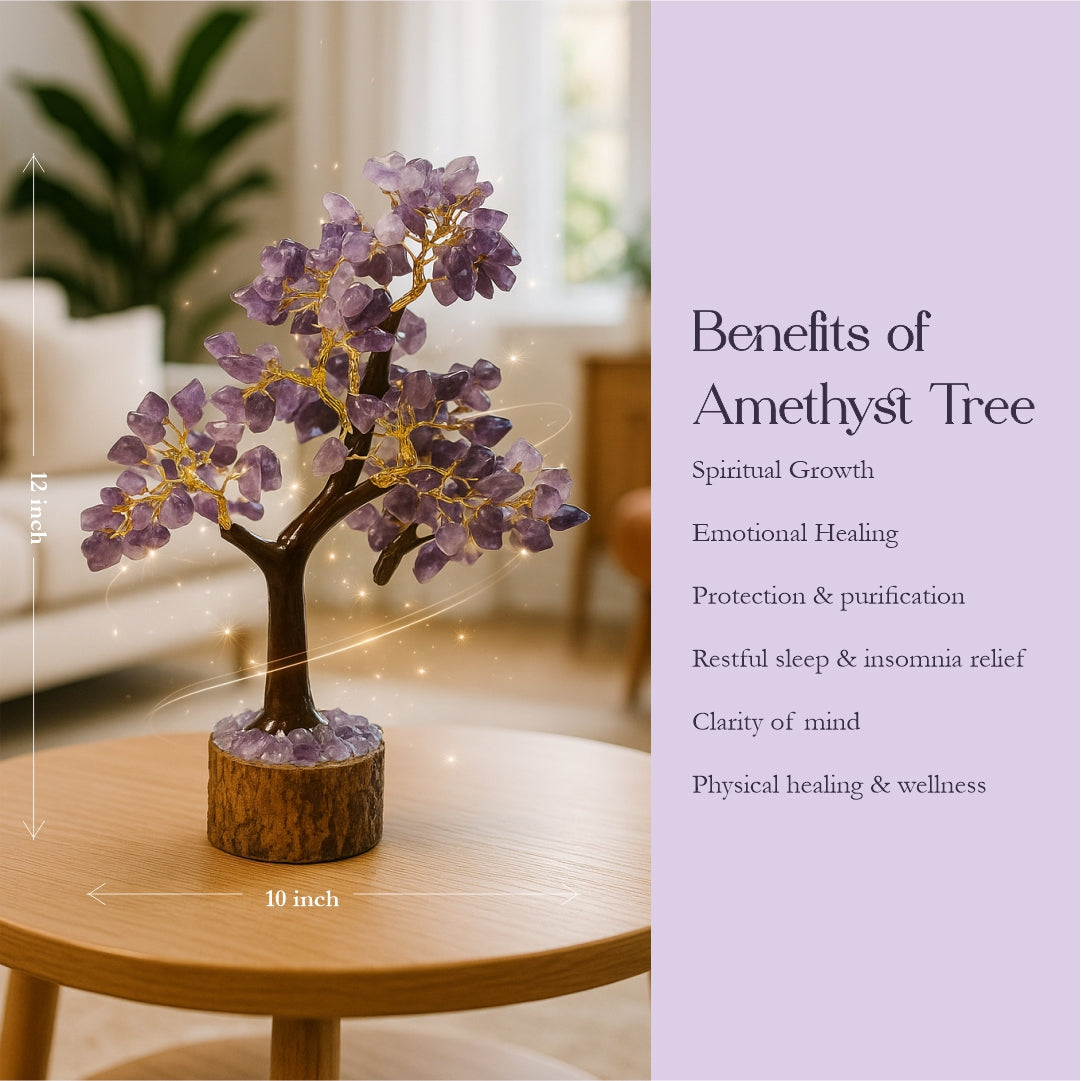 An Amethyst Crystal Tree is a beautiful healing ornament, made by adorning a wire frame or tree-shaped branch with stunning amethyst gemstones. Amethyst, a vibrant purple stone, is highly esteemed for its ability to stimulate the mind, calm emotions, and foster spiritual growth.