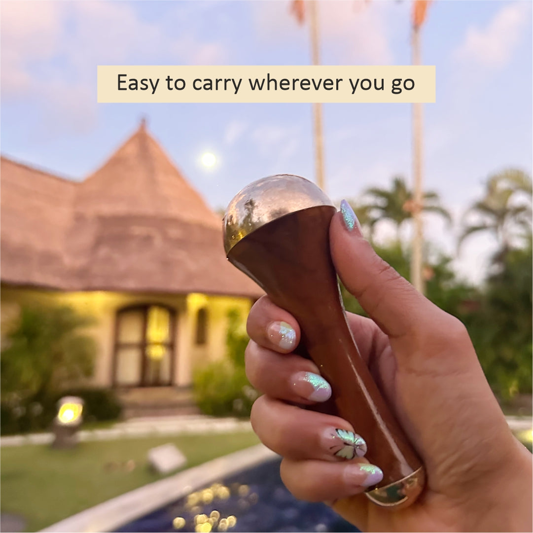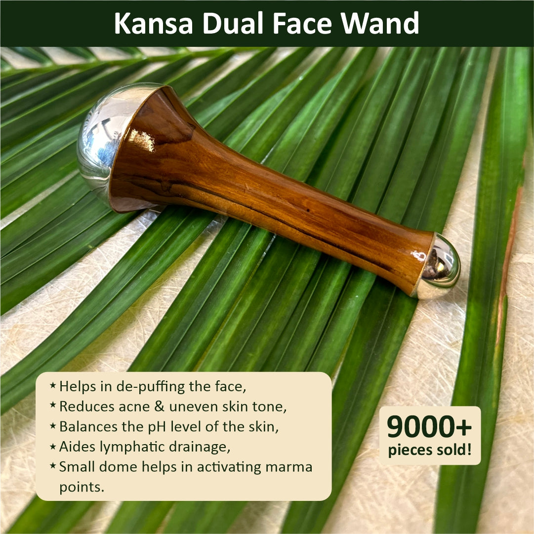 The Real magic of this wand comes from the metal (Bronze/Kansa) which is revered to promote lymphatic drainage & remove built up toxins. Re-energize your skin with a pure Kansa wand, a sacred mix of copper and tin that is known to balance pH levels & to help calm the appearance of irritation and redness. This anti-ageing tool reduces fine lines, wrinkles & gives you a smooth & glowing skin.