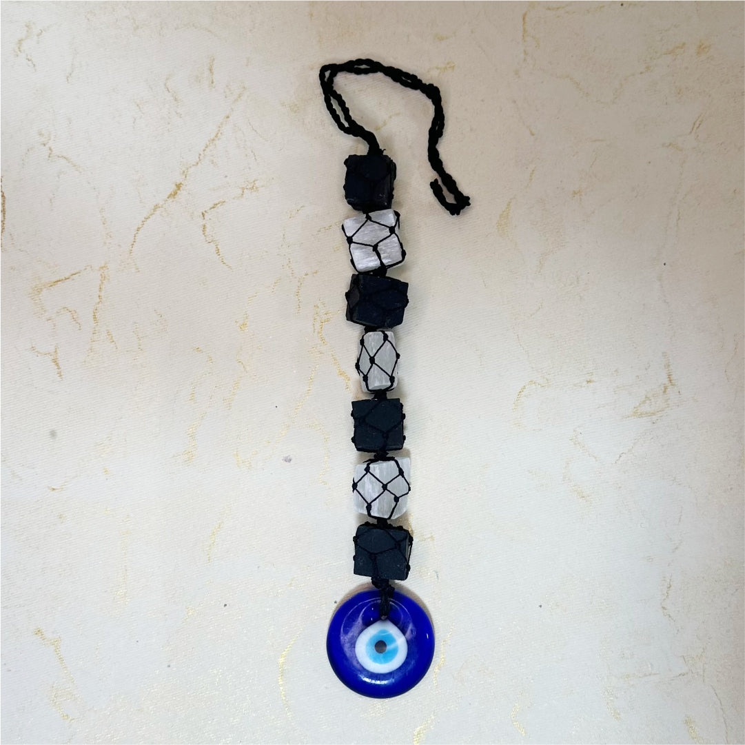 Black Tourmaline And Selenite Hanger With Evil Eyes Hanging